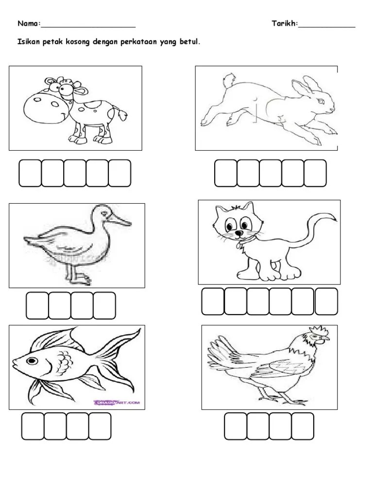 Bahasa malaysia prasekolah latihan haiwan jinak